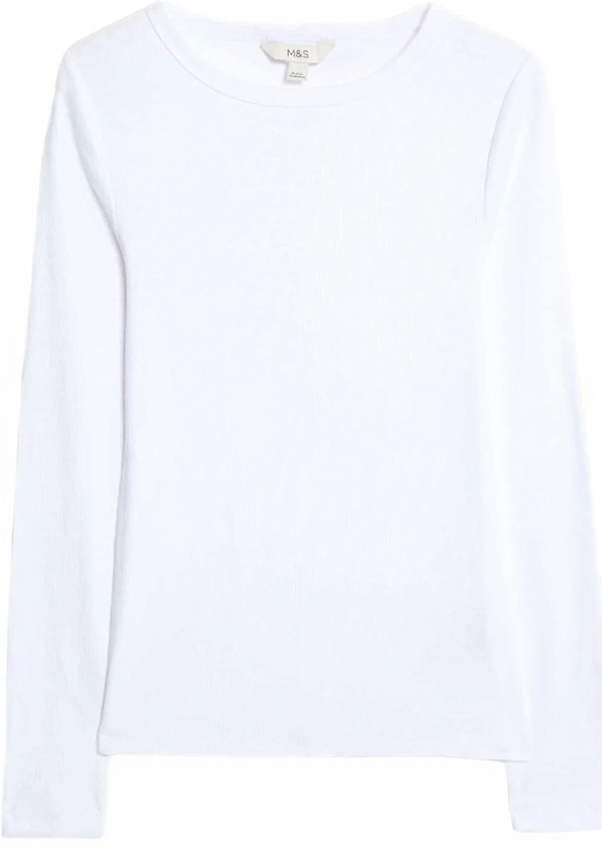Das Marks & Spencer gerippte Oberteil für Damen zeichnet sich durch seinen hohen Baumwollanteil und den schmalen Schnitt aus. Mit einem weichen, weißen Design und einem klassischen Rundhalsausschnitt bietet es optimale Passform und Tragekomfort. Hergestellt aus hochwertiger Baumwolle, ist es maschinenwaschbar bis 30°C und trocknergeeignet, was die Pflege vereinfacht. Das Oberteil ist in der Größe UK 24 (EU 52) erhältlich und eignet sich perfekt als vielseitiges Basic für jede Garderobe.