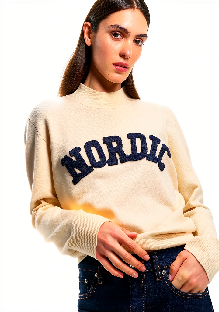 Der Pullover ist in verschiedenen Damengrößen erhältlich, die eine normale Passform bieten. Bitte konsultieren Sie die Größentabelle, um die beste Option für Sie zu finden.